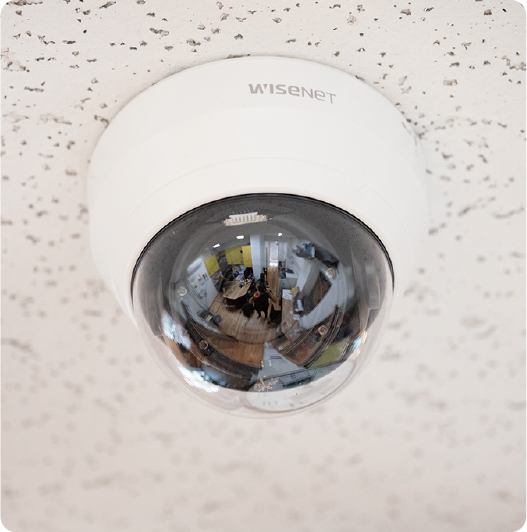 玄関に防犯カメラを設置して、部外者の侵入を防ぎます。また各保育室・園庭・縁側・多目的室・事務室などにもカメラを設置することで、事故や災害時の状況を録画記録し、安全対策・検証に役立てます。